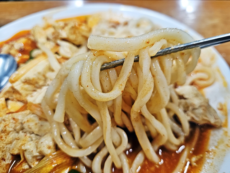 적당히 먹었으면 우동 사리를 넣어 야무지게 비벼준다. 탄수화물 섭취를 줄이고 있지만 이런 양념에 면을 비비지 않으면 예의에 어긋나는 법이지.