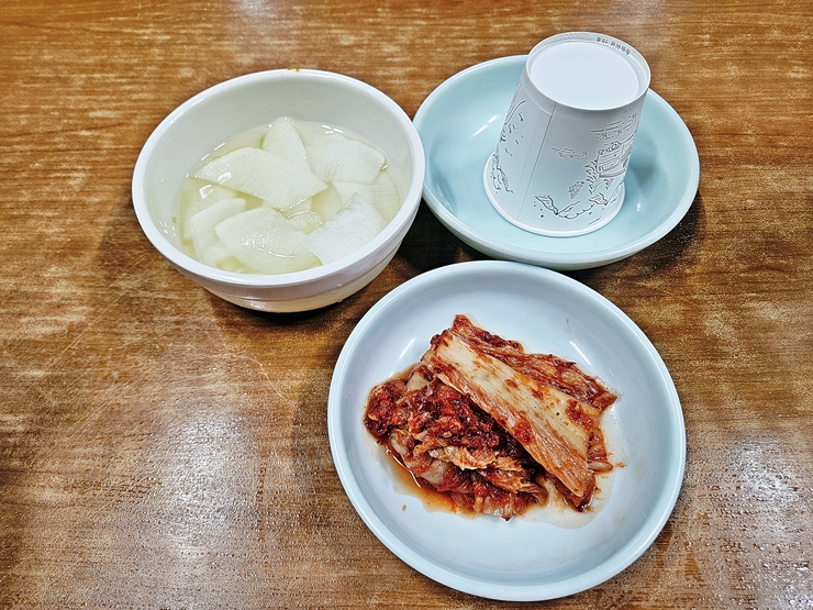 반찬은 김치와 무절임이 나온다. 상당히 소박하기 그지 없지만 이런 반찬만 있어도 충분하다. 김치는 마늘이 좀 많이 들어간 느낌이었는데 알싸한 맛이 좋았고 무절임은 그냥 무절임 맛이었다.