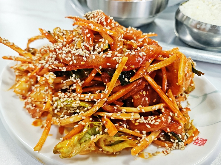 정말 맛있었던 갓김치. 이 갓김치 하나만 있으면 소주 반 병은 그냥 마실 수 있는 맛이다. 반찬이 많이 나오기 때문에 굳이 리필은 하지 않았고 다른 반찬들을 남김 없이 다 먹기로 했다. 이렇게 맛있는 갓김치를 서울에서도 흔하게 맛볼 수 있으면 좋겠다.