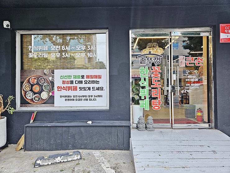 요새 닭도리탕을 베이스로 여러 재료를 넣어 만든 요리들이 많아지고 있다. 몇 년 전부터 크게 유행한 곱도리탕을 시작으로, 차돌박이를 넣어 만든 차도리탕, 우삼겹을 넣어 만든 우도리탕 등이 생기고 있다. 최근에 꽃게를 넣어 만든 꽃도리탕이 나왔다는 이야기를 듣고 룰루랄라 찾아간 큰손솥뚜껑꽃도리탕. 점심에는 한식 부페를 운영하고 저녁에는 꽃도리탕을 판매하고 있다고 한다.