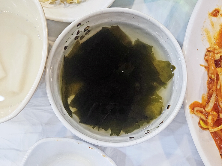깔끔한 맛이 인상적인 미역국. 고기가 들어가지 않아서 풍미는 덜 하지만 개운하고 깔끔하다. 이런 미역국 하나로도 소주 반 병은 거뜬히 마실 수 있지.