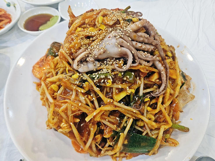 해물찜답게 다양한 해산물이 들어 있다. 해산물의 선도가 좋아서 비린 냄새나 비린 맛이 전혀 느껴지지 않는다. 지난 번에도 느꼈지만 내 입에는 살짝 맵고 칼칼한데, 해물찜은 이런 매운 맛과 칼칼한 맛으로 먹기 때문에 땀 뻘뻘 흘리며 맛있게 먹었다. 상암에서 맛있는 해물찜을 먹고 싶다면 한 번 가볼 것을 추천하는 곳이다.