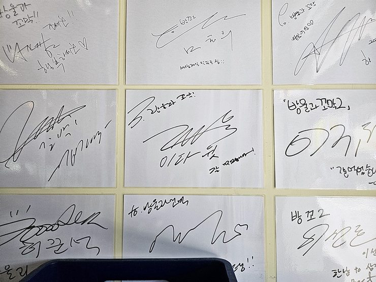 여러 사람의 사인이 있다. 난 연예인은 잘 모르기 때문에 그냥 사진 한 장 찍고 눈 여겨 보지는 않았다. 다들 나처럼 사인을 잘 하는 것 같다.