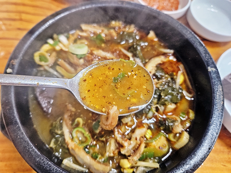 아름다운 모습의 양선지 해장국. 개인 기호에 따라 들깨 가루나 고추 기름을 추가해서 먹으면 좋다. 난 들깨 가루를 좀 더 넣어 먹었지.