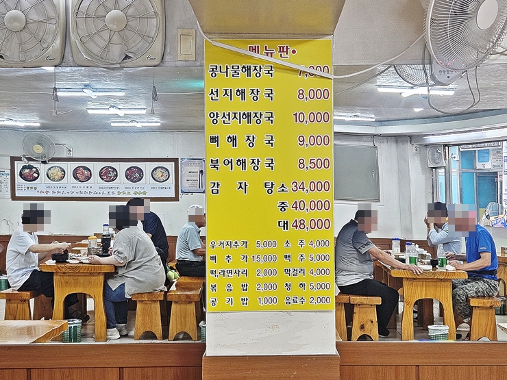 해장국이라는 요리 특성 때문인지 고객들은 연령대가 좀 높았다. 이런 곳에 오면 나는 어린이. 해가 떨어지기 전부터 많은 양의 소주를 마시는 고객도 있었는데 상당히 부러웠다.