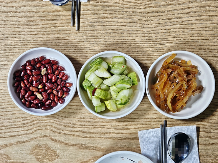 반찬. 땅콩, 오이 무침과 짜사이가 나온다. 오이 무침 맛이 파이황과와 비슷해서 참 좋았다. 중국에 가면 매일 먹었던 파이황과. 오이 요리에서 최고인 것 같다.
