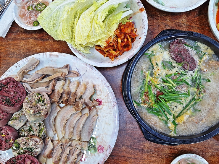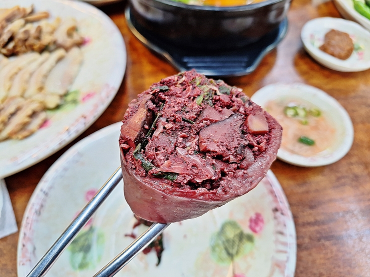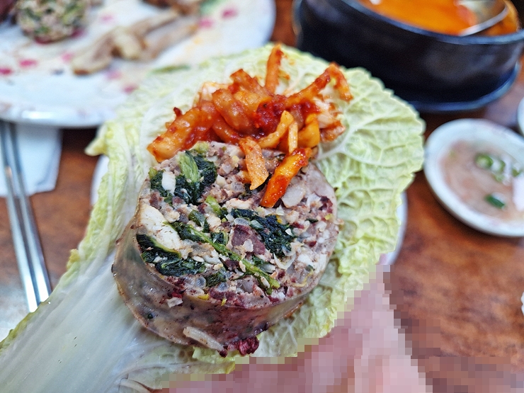 백순대도 양배추와 무생채 조합으로 먹었다. 백순대는 선지와 고기가 굉장히 소량 들어가고 숙주, 우거지와 각종 채소로 만들었다. 자칫 밋밋할 수 있는 맛을 선지와 고기로 보충했다. 백순대는 담백한 맛이 굉장히 인상적이었다. 오랜만에 수준 높은 순대와 부속 고기를 먹어 행복한 날이었다. 노원역, 상계역 근처에서 맛있는 전통 순대를 먹고 싶다면 꼭 한 번 가볼 것을 추천하는 곳이다.