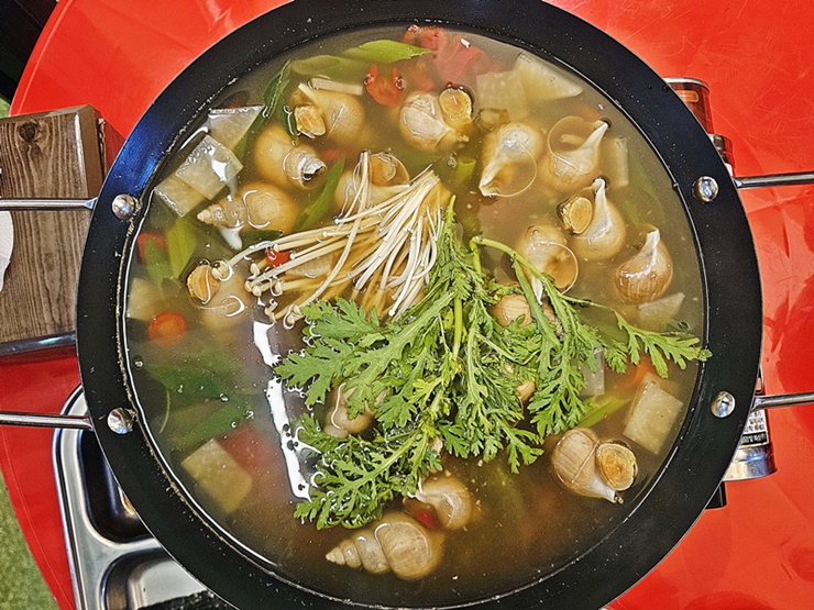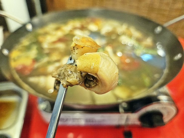껍질과 살을 잘 분리한 후 맛있게 냠냠. 칼칼하고 시원한 국물의 맛이 골뱅이와 상당히 잘 어울린다. 골뱅이는 쫀득하고 고소해서 씹으면 씹을수록 먹는 맛이 난다. 이런 골뱅이탕 하나만 있어도 소주 두 병은 거뜬하다.