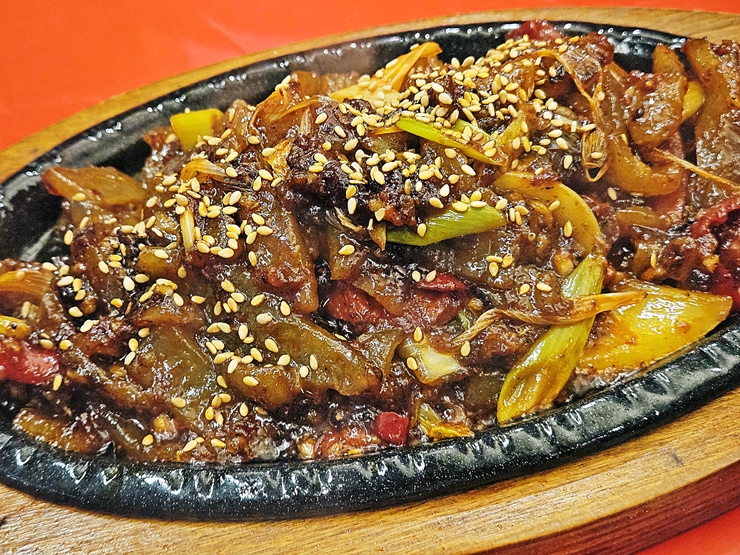 나와 친구 모두 좋아하는 돼지 껍데기도 주문했다. 돼지 껍데기는 매콤한 소스에 볶아 나오는데 껍질이 굉장히 쫀득했다. 보관을 잘못한 껍데기의 경우 누린내가 심하게 나는데, 그런 누린내는 전혀 느낄 수 없었다. 껍데기는 부위 특성상 느끼할 수 밖에 없는데, 그런 느끼함을 매콤한 소스로 잘 잡았다.