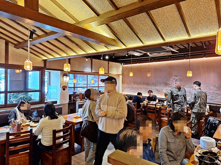 의외로 많은 고객들로 북적이는 내부 모습. 우리가 들어간 후 바로 대기가 생겼다. 아무래도 위치가 위치여서 그런지 군복을 입고 온 고객들도 있었다. 우리는 2인석으로 자리를 안내 받았다.