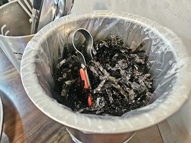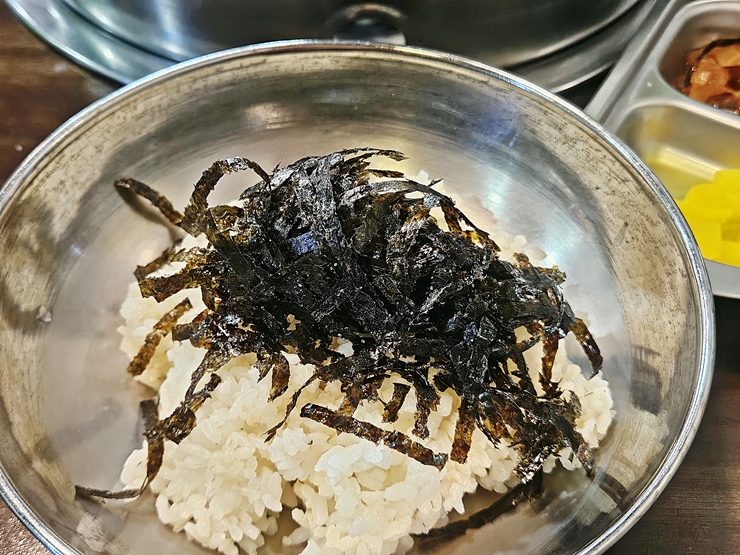 요새 김 값이 상당히 많이 올랐는데 테이블에 이렇게 김가루 통이 있다. 이런 호쾌함은 마음에 든다. 김가루는 밥이 나올 때 대접에 먹을 만큼 넣어 먹으면 된다.