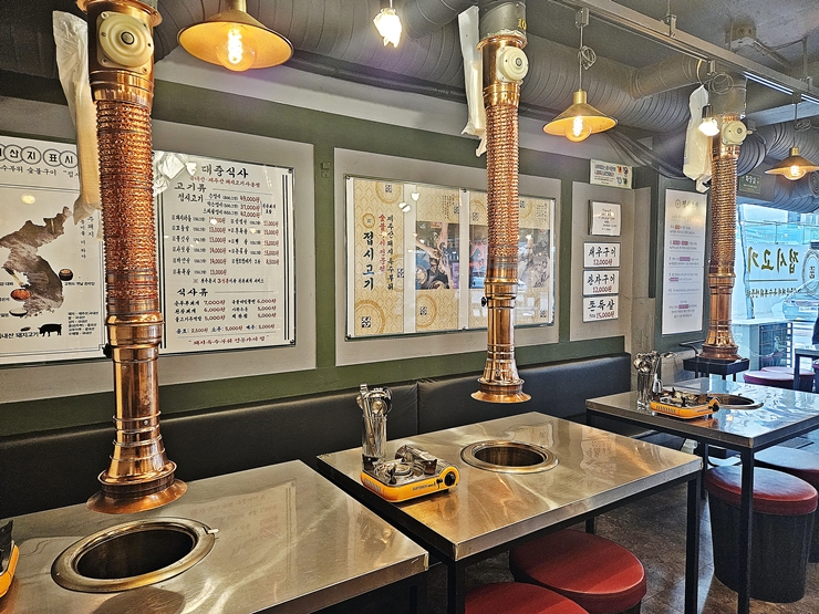내부는 상당히 넓고 쾌적한 편이다. 좌석간 거리가 좁은 것이 살짝 흠이긴 하지만 테이블이 넓어서 옆자리에 앉은 고객과 부딪힐 염려는 없어 보였다. 퇴근 시간 전에 도착했는데 퇴근 후에는 좌석의 80% 이상이 차는 것 같다. 응암역 부근에서 고기를 많이 먹어본 적이 없는데, 이곳도 나름 맛집이 많은 것 같다.