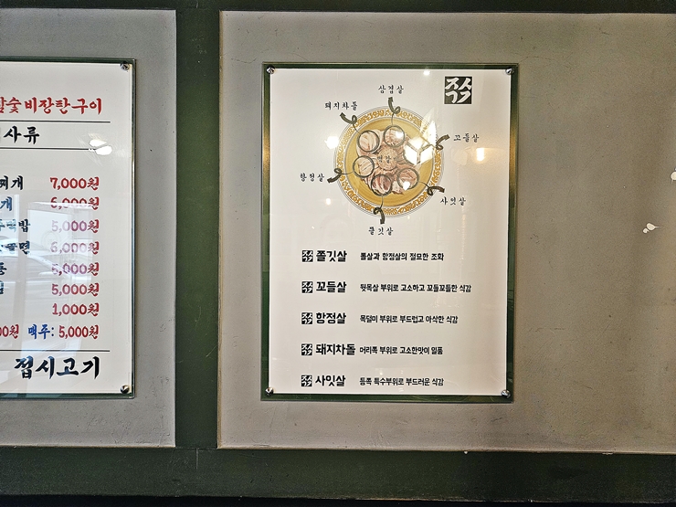부위에 대한 상세한 설명도 되어 있다. 쫄깃살은 뽈살과 항정살의 절묘한 조화가 이뤄진 부위이고, 꼬들살은 뒷목살 부위, 항정살은 이제는 익숙한 부위, 돼지차돌은 머릿고기 부위, 사잇살은 등쪽 특수 부위라고 한다. 이런 공부는 하지 않아도 되지만 적혀 있기에 한 번 가볍게 읽어봤다.