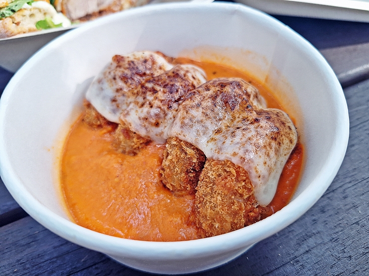 고로케는 감자로 만들었고 카레 맛이 나는 소스와 치즈가 올라간다. 흔히 볼 수 있는 고로케의 모습이지만 밖에서 먹으면 더욱 맛있게 느껴지는 법이지.