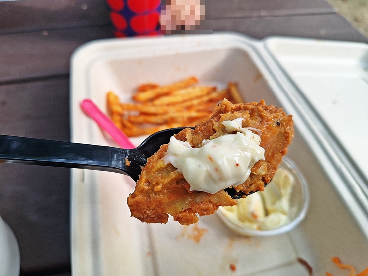후라이는 시즈닝이 되어 있는데 나나 짝꿍 모두 이런 스타일의 후라이를 별로 좋아하지 않는다. 미리 예습을 하고 갔더라면 시즈닝을 하지 않고 달라고 했을 수 있었는데. 이래서 공부가 중요하다.
