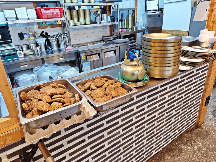 매장은 몇 년 전에 잠깐 유행했던 한옥 기와 스타일 인테리어로 했다. 이런 스타일이 갑자기 몇 년 사이에 확 늘어났다가 요즘은 좀 주춤해진 모습이다. 가게에는 20대부터 60대까지 다양한 연령대의 고객들이 있었다. 한식은 남녀노소 가리지 않고 누구나 쉽게 접할 수 있는 장점이 있지.