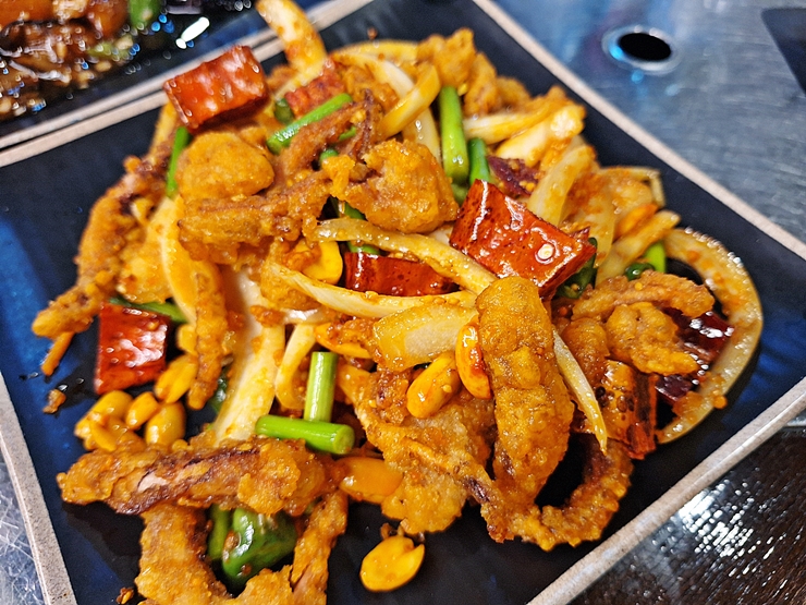 서비스로 받은 향라 오징어. 오징어를 튀긴 후 매운 소스를 사용해서 가볍게 볶은 것이다. 이 역시 상당히 매워서 많이 먹지 못했다. 매운 음식을 잘 먹지 못하는 슬픈 나. 흑흑흑. 기분 좋게 먹고 마시고 스트레스를 푸는 시간이었다. 당산역 부근에서 맛있는 양꼬치와 중국 요리를 먹고 싶다면 꼭 한 번 가볼 것을 추천하는 곳이다.