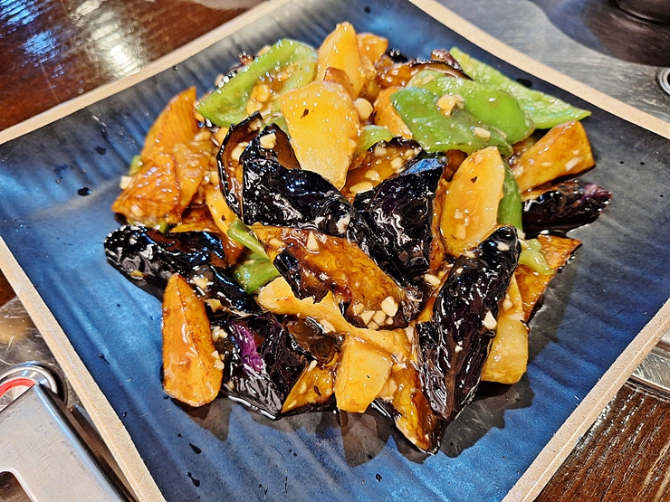 지삼선. 지삼선은 땅에서 나는 세가지 재료를 사용해서 볶은 것을 말한다. 보통 가지, 당근과 피망이 들어가는데 가게에 따라 피망이 고추로 바뀌거나 다른 걸로 바뀌기도 한다. 기름을 잔뜩 머금은 가지와 감자가 맛이 없을 수가 없지. 살이 찌는 맛이라서 먹으면 먹을수록 체중이 늘어나는 느낌이 강하게 들지만 도저히 끊을 수가 없는 맛이다.
