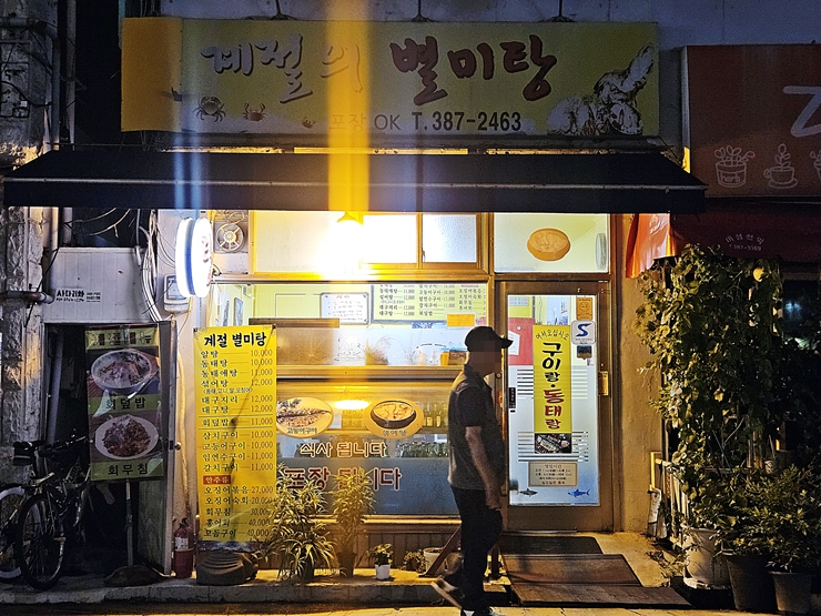 곰돌이포차에서 식사를 마친 후 집에 가려고 했는데 지인 녀석이 술을 한 잔 더 하자고 한다. 평소 같으면 주량을 넘겨서 술을 마시지 않는 녀석인데, 이날 따라 기분이 좋았는지 조금 더 마시자고 한다. 그렇다면 조금 더 마셔야지. 그래서 어디서 무엇을 맛있게 먹을까 잠시 고민을 했는데 녀석이 동태탕을 먹자고 한다. 그래서 동태탕을 먹기 위해 찾아간 계절의 별미탕.