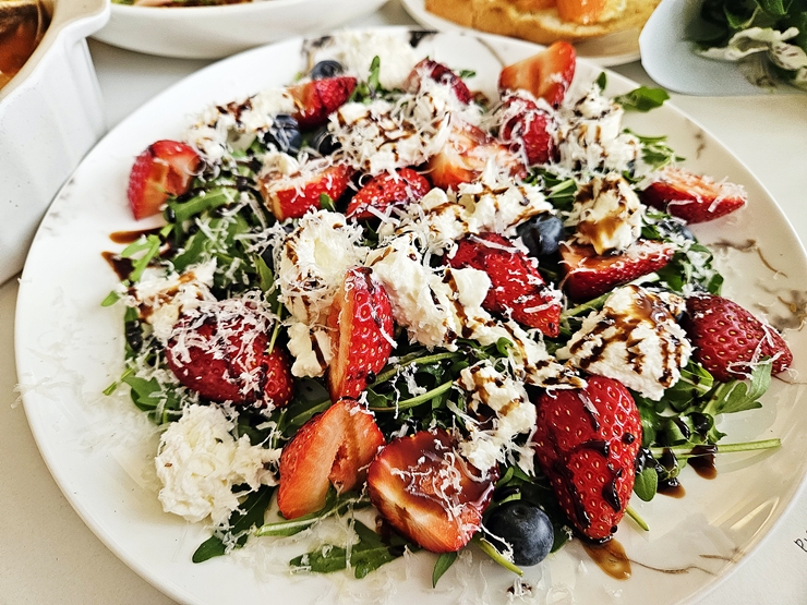 서비스로 나온 샐러드. 블루베리, 딸기와 치즈가 듬뿍 들어간 샐러드다. 내가 싫어하는 발사믹 드레싱을 기반으로 해서 만들었다. 지인들에게 양해를 구한 후 최대한 발사믹 소스가 없는 부분만 골라 먹었다. 제철 채소와 과일을 듬뿍 사용해서 만든 샐러드가 맛이 없을 수 없지. 채소보다 고기를 좋아하는 나이지만 열심히 잘 먹었다.