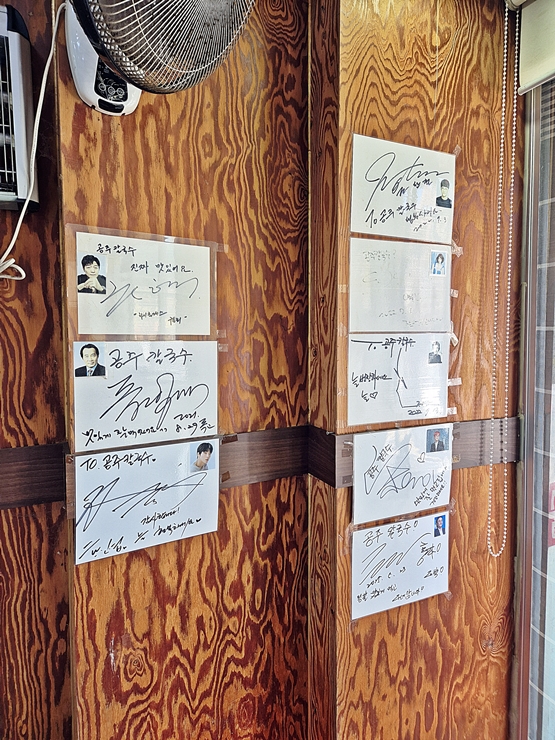 매장에 들어가자마자 제법 많은 싸인이 보인다. 누가 누군지 하나도 모르겠지만 어련히 유명한 사람들이겠지. 그림처럼 보이는 싸인도 있는 것을 보면 만화가나 작가인 것 같은 사람도 방문한 것 같다. 난 나중에 유명해지더라도 이런 싸인은 하지 않고 몰래몰래 먹고 나오도록 해야지.