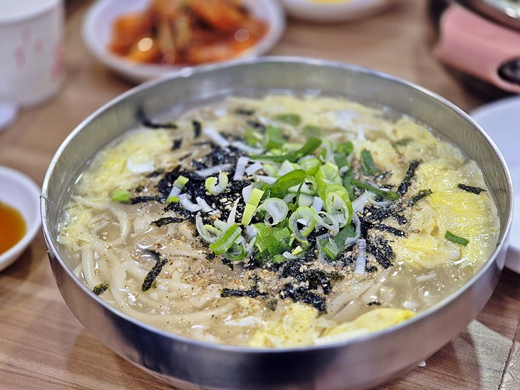 맑은 칼국수. 이름과 다르게 완전 맑지 않고 살짝 걸쭉한 편이다. 국물 색에서 알 수 있듯이 상당히 진하고 고소한 맛을 낸다. 나처럼 매운 것을 잘 먹지 못하는 사람에게 딱 좋은 칼국수다. 칼국수의 식감은 푹 삶은 것처럼 굉장히 부드러운데, 부담 없이 들어가는 것이 좋다. 간도 적당해서 따로 양념을 넣어 먹지 않았다.
