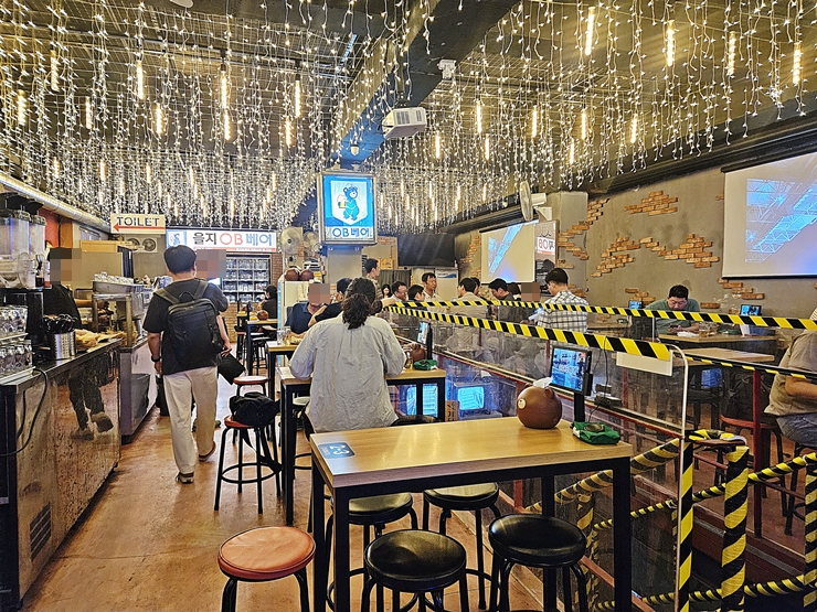 예전에는 더 많은 고객들이 있었던 것 같은데, 이번에 방문했을 때는 드문드문 빈 자리가 보였다. 을지OB베어보다 핫한 곳들이 많이 생기기도 했고, 프랜차이즈 맥주집들이 많이 늘어나서 고객들이 분산 된 것 같다. 우리도 적당한 자리를 잡고 앉았다.