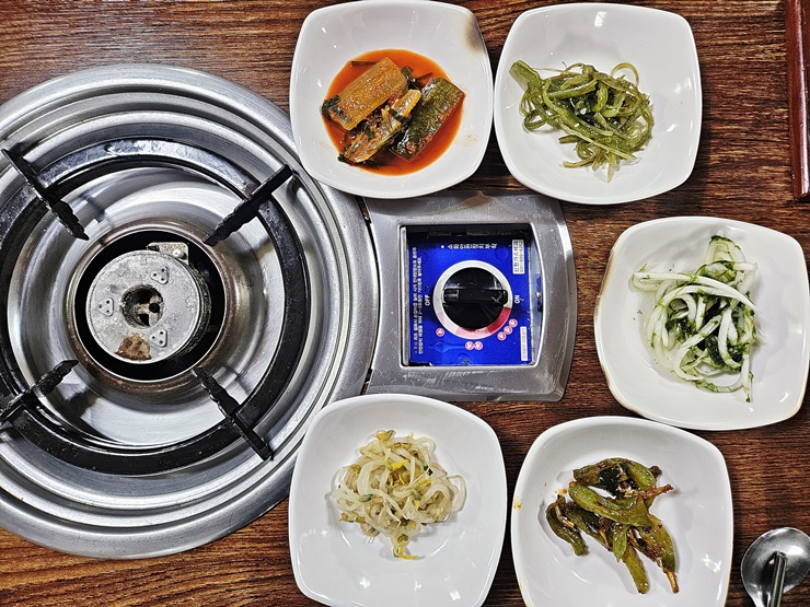 식당 내부 모습은 전형적인 동네 식당의 모습이다. 이런 식당은 아직 좌식을 유지하는 경우가 간혹 있는데, 다행스럽게도 좌식이 아닌 테이블로 이뤄져 있었다. 이제 나이가 들어서 그런지 좌식에 오래 앉아 있으면 무릎이 시리고 허리가 아프다.