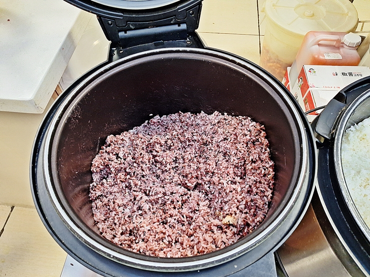 여기부터 한식 뷔페 메뉴다. 밥은 흰 쌀밥과 흑미가 제공된다. 각자 취향에 맞게 담아 먹으면 된다. 나는 흑미를 조금 담았다. 오전에만 10,000보를 넘게 걸어서 점심을 든든히 먹지 않으면 오후에 힘이 빠지기 마련이다.