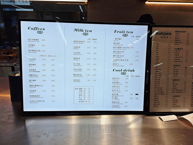 다양한 커피, 밀크 티, 과일 주스와 중국 차 등을 판매하고 있다. 중국 커피 값은 우리나라와 비교해도 저렴한 편이 아니다. 젊은 사람들이 커피를 많이 마시다 보니 커피의 수요가 높아져서 자연스럽게 가격이 올라갔다고 한다. 우리는 항상 그렇듯이 아이스 아메리카노를 주문하고 카페 내부를 둘러보기로 했다.