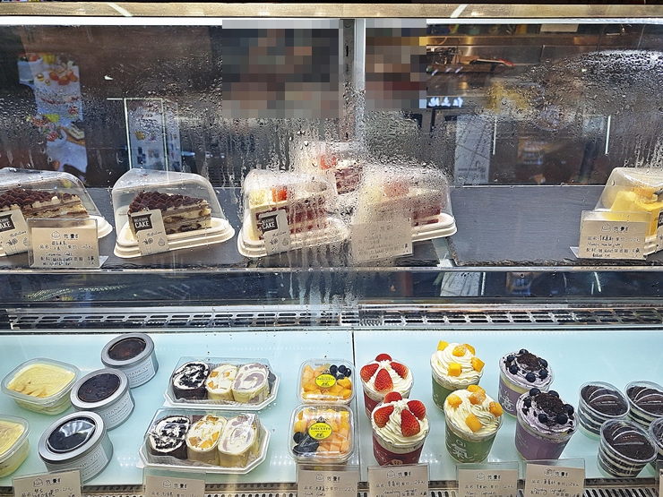조각 케이크와 컵 케이크도 판매한다. 난 중국어를 모르기 때문에 정확히 어떤 말이 써져 있는지 모르겠지만 대충 모양을 모니 초콜릿 케이크와 과일 케이크인 것 같다.