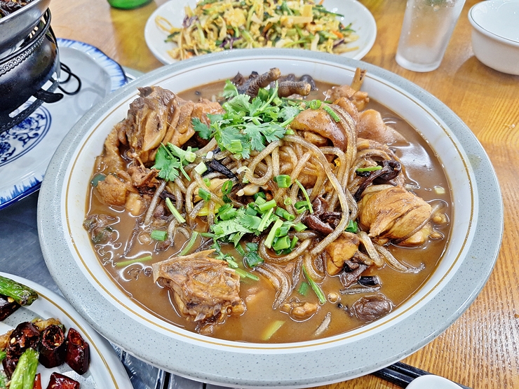 동북식 찜닭. 우리나라에서 파는 찜닭에 비해 색이 진하고 고수가 들어간 것이 특징이다. 중국인들은 고수를 정말 좋아하는구나. 이런 요리는 고수가 들어갔다는 것만 제외하면 누구나 쉽게 먹을 수 있겠다.