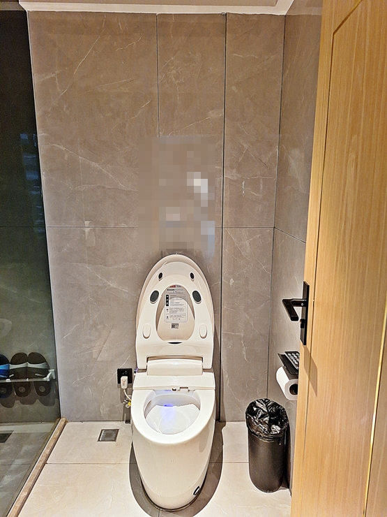 깔끔한 화장실. 환풍기도 잘 작동 되고 비데도 잘 됐다. 이제 우리나라는 화장실에 휴지통이 많이 사라졌는데 중국은 아직 화장실에 휴지통이 비치 되어 있었다.