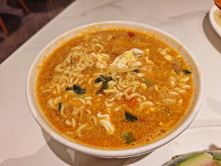 면을 좋아하는 나라답게 조식으로 다양한 국수를 즐길 수 있다. 쌀국수, 어쩌고 국수, 저쩌고 국수를 비롯하여 신라면과 중국 라면도 준비 되어 있다. 우리나라 사람들이 많이 묵는 곳이라서 그런지 신라면이 굉장히 인기가 많았다. 라면 쪽에는 작은 만두가 있어서 라면에 넣어 먹을 수 있도록 되어 있다.