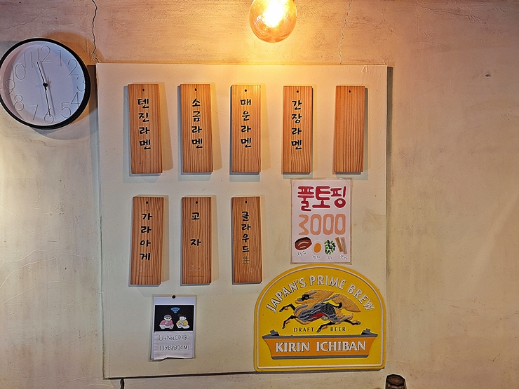 매장에서는 분주하게 요리 준비를 하고 있다. 매장 사이즈를 보면 육수를 직접 만들지는 않을 거 같다. 라멘이 처음 유행할 때는 육수, 차슈와 멘마까지 직접 만드는 곳이 있긴 했는데, 요새는 라멘 인기가 좀 떨어져서 그런지 그런 가게가 많이 사라졌다. 육수나 차슈를 직접 만들지 않아도 좋다. 맛만 있으면 된다.
