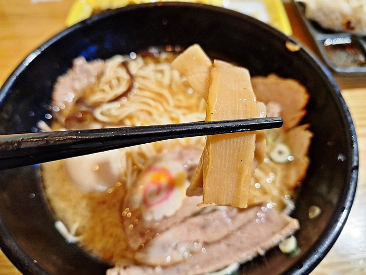 멘마. 멘마는 삶은 죽순을 말하는데 이걸 직접 만드는 곳은 우리나라에 한 곳도 없다고 봐도 무방할 것이다. 멘마는 특유의 약품 냄새가 나는데 이 냄새로 인해 호불호가 좀 갈린다.