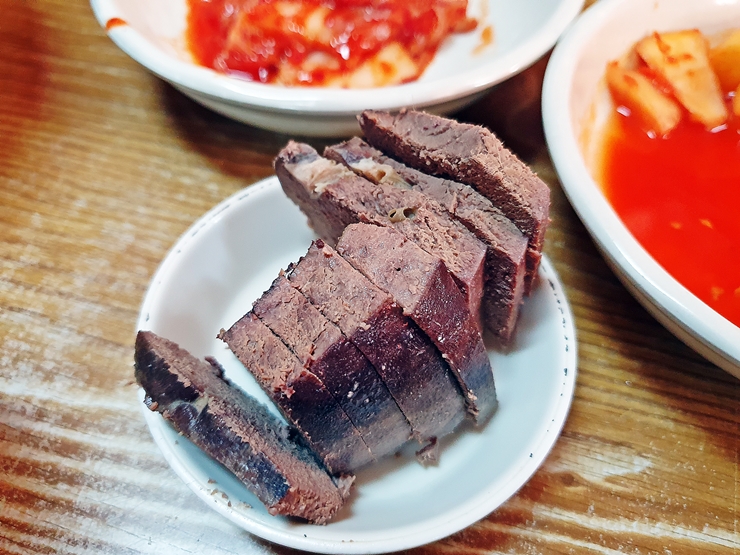 순댓국을 맛있게 먹고 있을 때 서비스로 받은 간. 난 간, 허파 같은 돼지 내장을 참 좋아한다. 많지 않은 양이지만 이렇게 서비스를 받으면 참으로 행복하기 그지 없다. 간은 삶은 지 좀 됐기 때문에 온기는 없었지만 부드럽고 촉촉하게 잘 삶아서 고소한 맛이 참 좋았다. 마포구 최고의 순댓국 집으로 꼽을 수 있는 합정순대국. 합정역에서 맛있는 순댓국을 먹고 싶다면 꼭 가볼 것을 추천하는 곳이다.