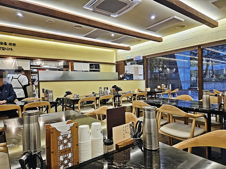 깔끔한 내부 모습. 이른 저녁 시간에 방문했기 때문에 비교적 여유롭게 식사를 할 수 있었다. 능동 미나리는 용산, 여의도 및 성수 등에 지점이 있는데, 모든 지점이 인기가 많아서 식사 시간에 맞춰 방문을 할 경우 대기를 할 수 있다. 그래서 대기 없이 식사를 즐기려면 일찍 방문을 하거나 늦게 방문을 하는 것이 좋다.