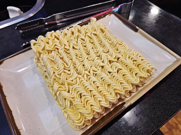 부대찌개에는 라면이 들어가야지. 그래서 탄수화물을 줄이고 있긴 하지만 라면 사리를 하나 추가했다. 예전에는 부대찌개에 당연히 라면이 들어 있었는데 이제는 이렇게 사리로 추가를 해야 한다. 아쉽긴 하지만 물가를 고려하면 어쩔 수 없지.