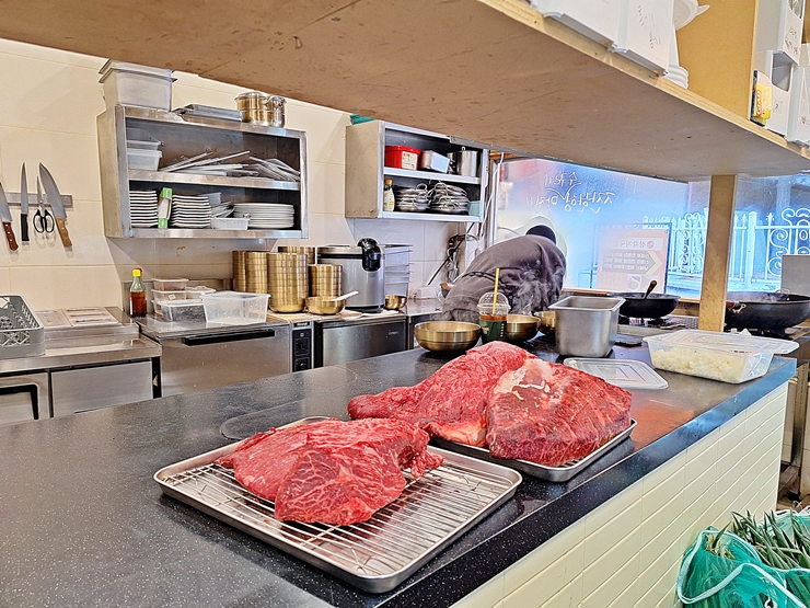 우리가 들어가고 있을 때 이날 일용할 고기가 있었다. 아직 근막과 기름을 덜 분리한 모습이었다. 잘 분리가 된 후 이날 일용할 양식이 되었겠지. 이 자리를 빌어 다시 한 번 소에게 심심한 감사를 표한다.