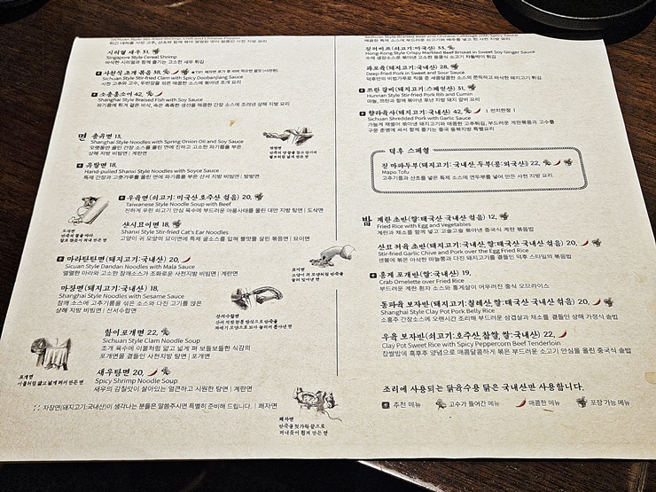 메뉴. 베이징 덕과 더불어서 다양한 요리를 판매하고 있다. 가격도 마냥 높지 않아서 부담 없이 여러 메뉴를 주문할 수 있지. 우리는 베이징 덕을 비롯해서 이것저것 주문해서 먹기로 했다.