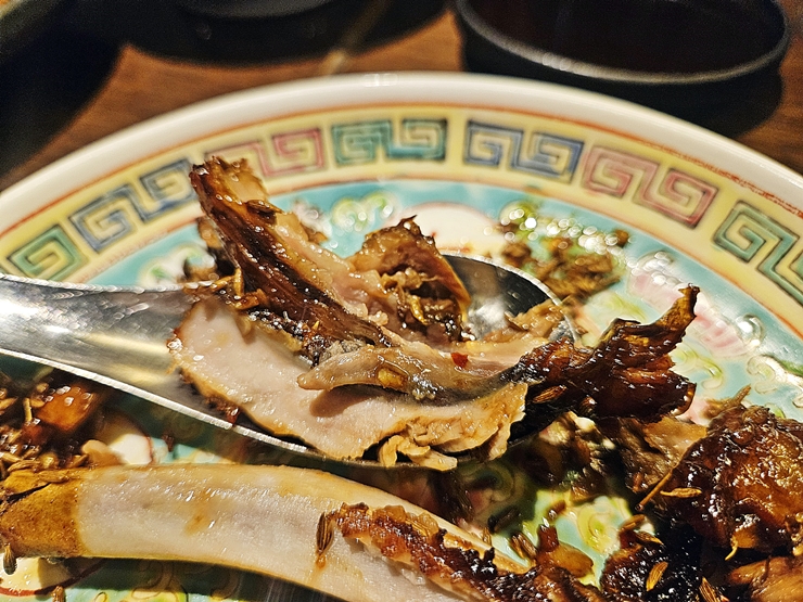 갈비는 한 번 튀겼음에도 굉장히 부드럽다. 부드러운 갈비에 간장 양념이 강하게 들어갔는데 짜지 않게 밸런스를 잘 맞췄다. 거기에 마늘과 쯔란이 듬뿍 올라가니 더욱 깊은 풍미가 난다. 역시 고기는 최고다.