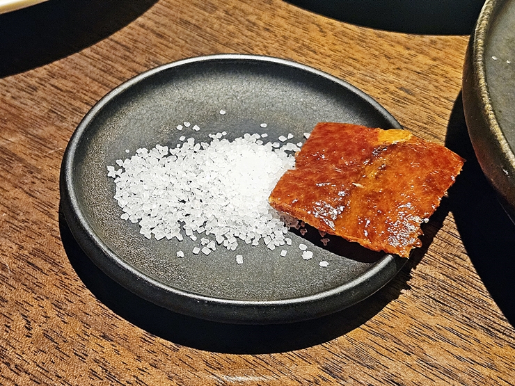 껍질은 소금을 살짝 찍어서 먹었다. 껍질의 바삭함이 상당하다. 이런 바삭한 껍질에는 소주 한 잔 걸쳐야 제격이지만 작년 연말에 술 자리가 너무 많아서 컨디션이 좋지 않았기 때문에 따로 술은 마시지 않았다.