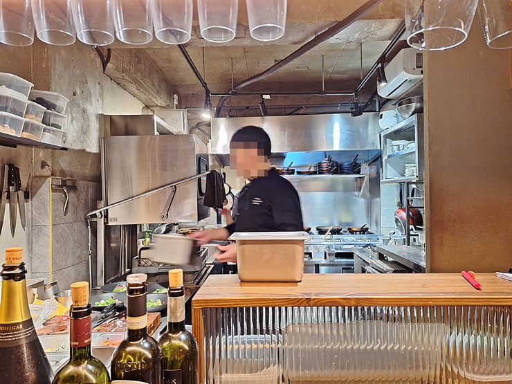 바 테이블에 앉으니 요리를 하는 모습을 볼 수 있어 좋았다. 주방 내부에는 3명 정도 열심히 요리를 만들고 있었다. 바 테이블에 앉으면 이런 모습을 볼 수 있는 것이 참 좋지.