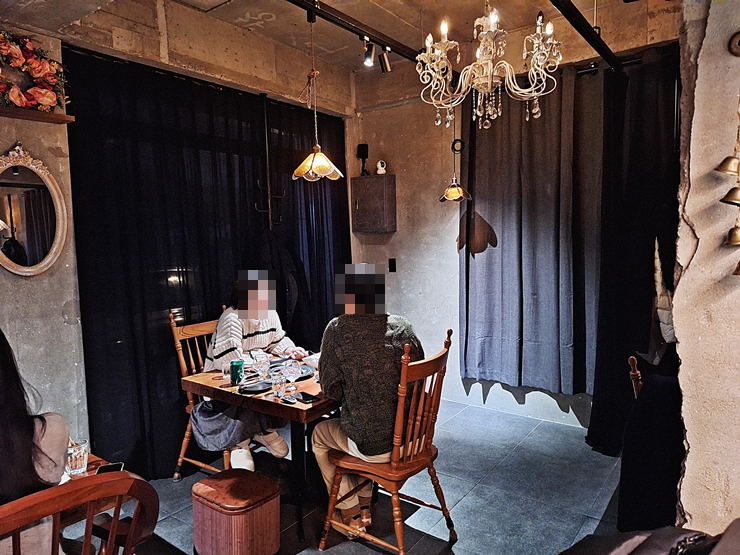 예약을 하고 가지 않아서 테이블은 전부 만석이었고, 우리는 바 테이블로 앉았다. 주변을 잠깐 둘러보니 대부분 20대 커플로 보이는 고객들이 식사를 하고 있었다. 나 대학 다닐 때는 길거리에서 쑥 캐서 그걸로 전 만들어 먹고 그랬는데. 요새는 참 좋아졌구나.