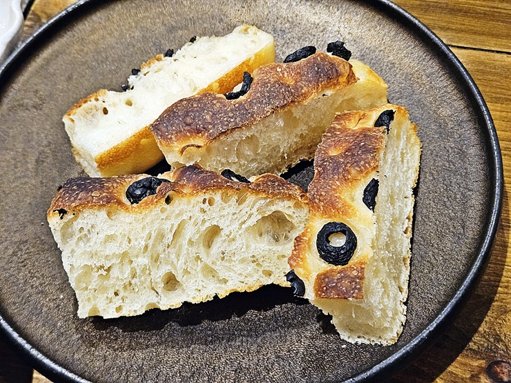 식전 빵으로 나온 포카치아. 난 올리브를 그다지 좋아하지 않는 편이지만 포카치아에 들어있는 올리브는 참 맛있지. 포카치아는 공기층이 풍부하게 들어 있어 푹신한 식감이 좋았다.