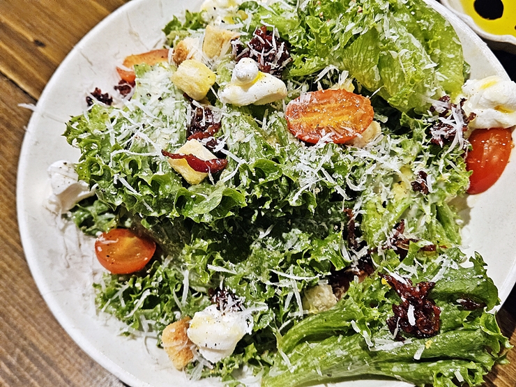 시작은 가뿐하게 시저 샐러드 샐러드. 사실 고기만 잔뜩 먹고 싶었지만 영양 불균형을 극복하기 위해서 샐러드를 주문했다. 치즈도 부족함 없이 들어갔고 여러 견과류, 베이컨과 토마토가 들어 있어서 밸런스가 잘 맞았다.
