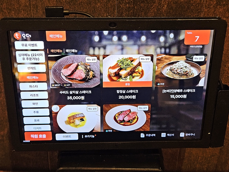 스테이크도 주문했는데 스테이크는 나오는데 시간이 좀 걸려서 스테이크 없이 항공 샷을 찍었다. 이렇게 찍어도 아름답기 그지 없지만 아무래도 고기가 없어서 그런지 허전함은 감출 수 없다.