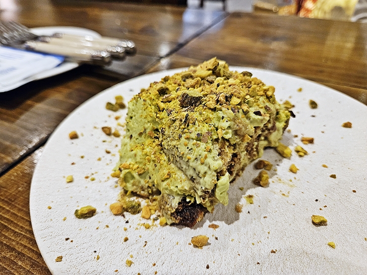 티라미수로 마무리. 티라미수는 직접 만든다고 하는데 내 기준에 달아 보여서 난 먹지 않고 사진만 찍었다. 함께 간 일행들 말로는 많이 달지 않고 피스타치오 맛이 강하게 나서 만족스러웠다고 한다. 은평구에서 합리적인 가격으로 맛있는 요리를 즐기고 싶다면 한 번 가볼 것을 추천하는 곳이다.