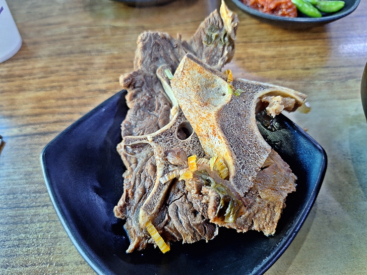 큼직한 소 뼈가 두 조각이 나온다. 돼지가 아닌 소를 사용하는데 그래서 그런지 더욱 맛이 깊어지는 느낌이다. 난 소보다 돼지를 더 좋아하지만 이런 국밥에는 소고기가 잘 어울리지.
